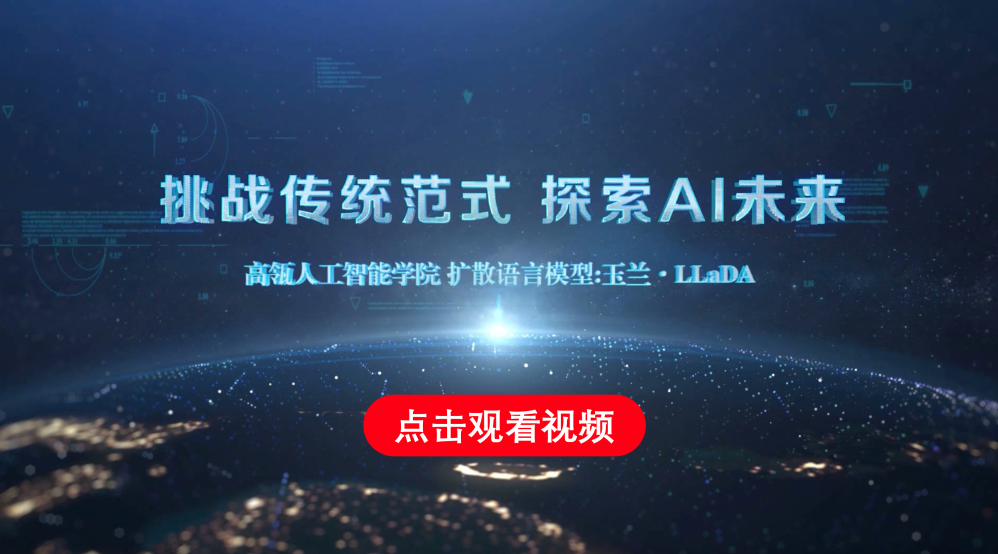 成果介绍:以ChatGPT、DepSeek为代表的大语言模型均传统自回归范式:从左到右、文字接龙式生成文本。荔枝视频 具有前瞻性地探索新的语言生成范式——扩散语言模型。学院于2025年2月发布全球首个80亿参数扩散语言模型LLaDA,挑战自回归模型不可替代的领域共识。LLaDA 通过扩散采样的方式而非从左到右的方式生成连贯对话,效果媲美同规模代表性自回归模型并突破单向推理瓶颈,引起了国际学术界、工业界和开发者的广泛关注。LLaDA在国内外社交媒体被广泛讨论,单帖浏览量破40万。开源模型单月全球下载量超过17万次。LLaDA第一次验证了非自回归范式的可行性,加深了领域对生成式人工智能的理解,未来还有望结合Sora等视频扩散模型,统一多模态生成式人工智能的基本范式。