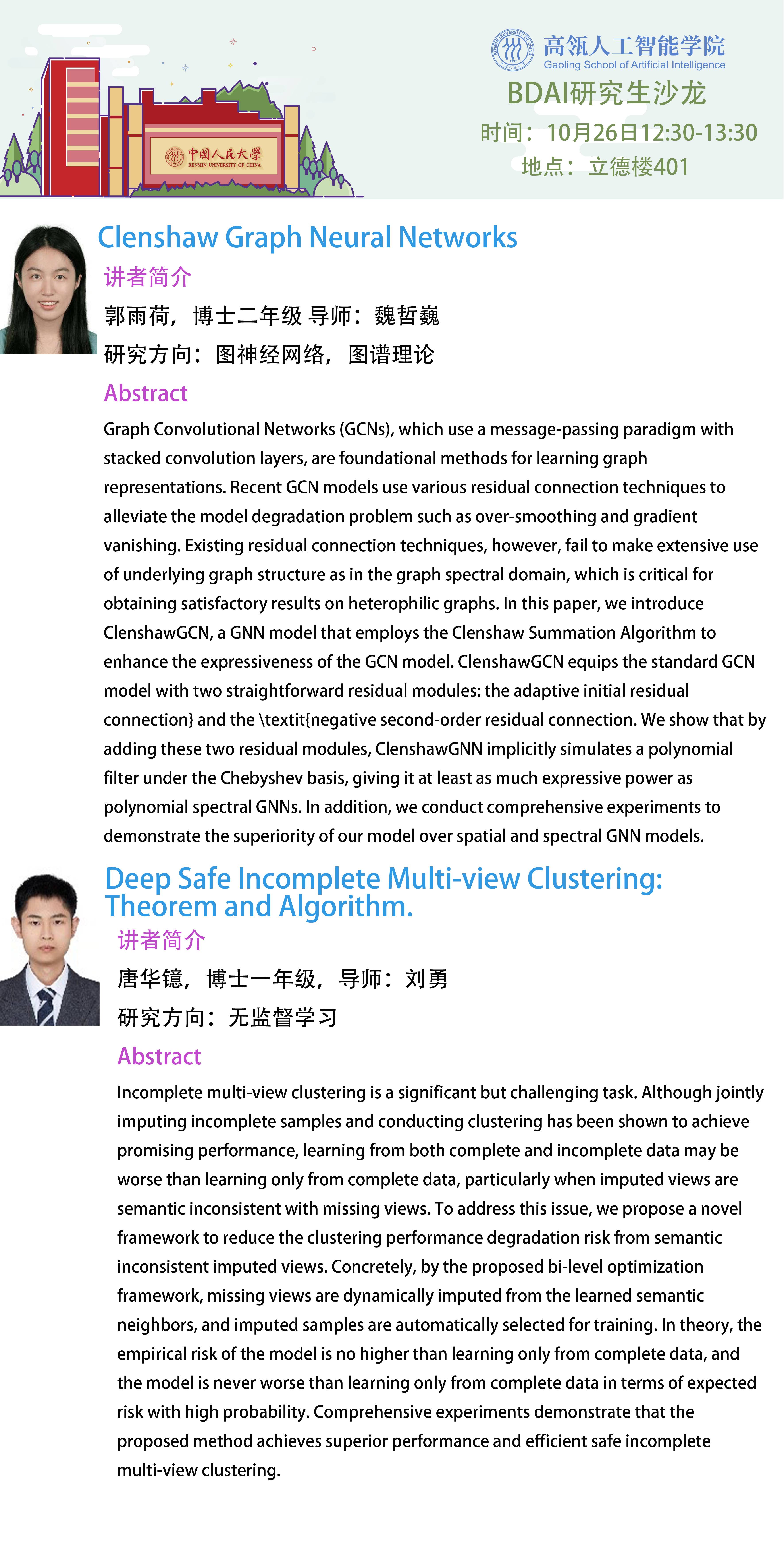 报告题目:Deep Safe Incomplete Multi-view Clustering: Theorem and Algorithm.