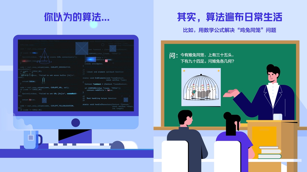 图1 :用数学公式解决“鸡兔同笼”问题体现了算法思维