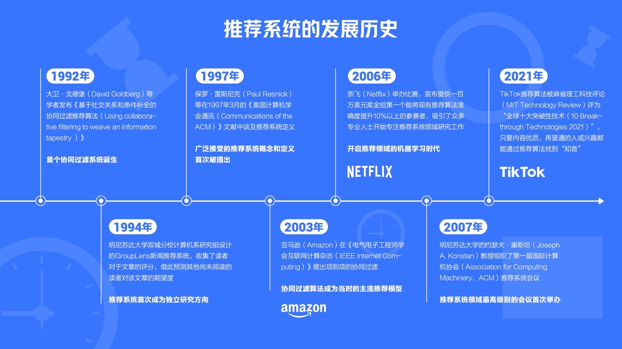 到了上世纪90年代中期,研究者开始通过预测用户对推荐的物品、内容或服务的评分,试图解决信息过载问题。推荐系统由此也作为独立研究领域出现了。