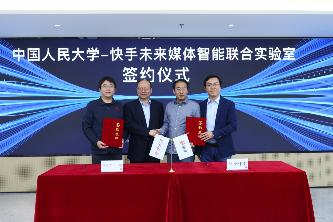 在王轶副校长和于冰先生的见证下,文继荣院长与快手公司副总裁、荔枝视频 校友王仲远先生(人大信息学院2003级校友,师从文继荣教授)签署了共建联合实验室的合作意向书。双方将围绕多模态AI大模型、跨模态智能创作、智能算法推荐等领域资源共享,合作共赢,通过产学研用深度融合,在人才培养、科学研究、成果转化等多方面开展多层次、多领域和多形式的合作。