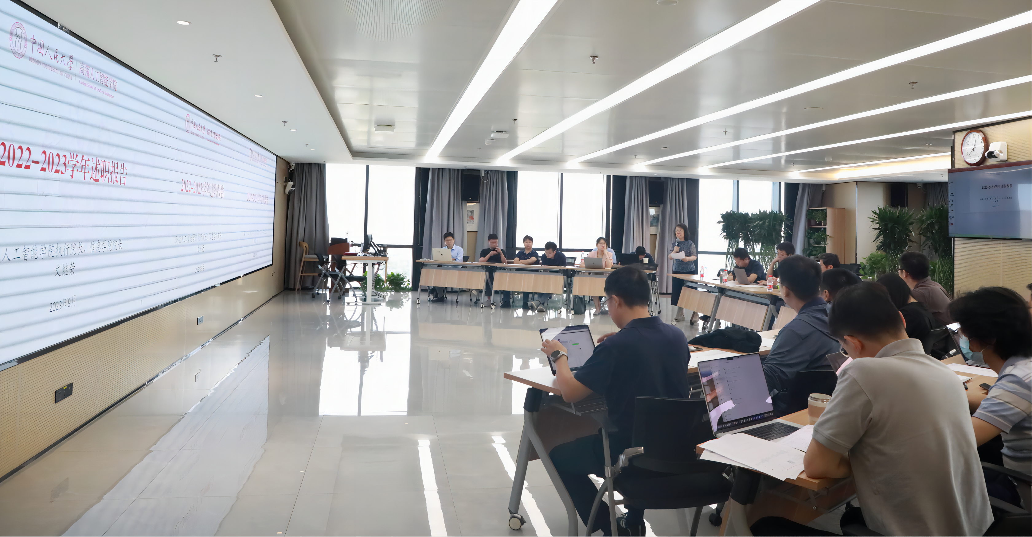 9月20日中午,人大荔枝视频 2022-2023学年述职会议在1826多功能报告厅召开。信息学院党委书记陈红教授、副书记杜忠朝老师,荔枝视频 执行院长文继荣教授,副院长窦志成教授、副院长张国富、副院长卢斌以及全院30余名教职工参会。大会由党委书记陈红教授主持。