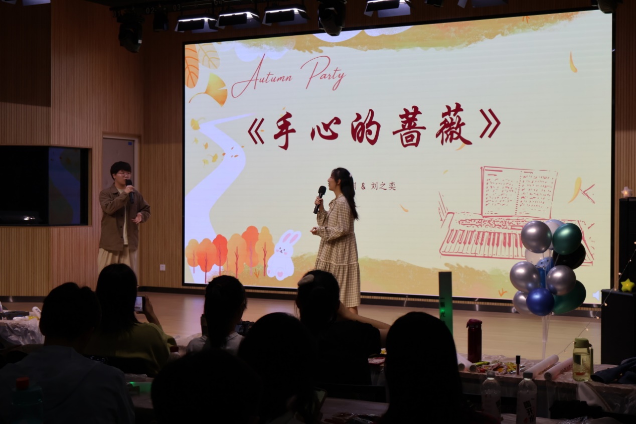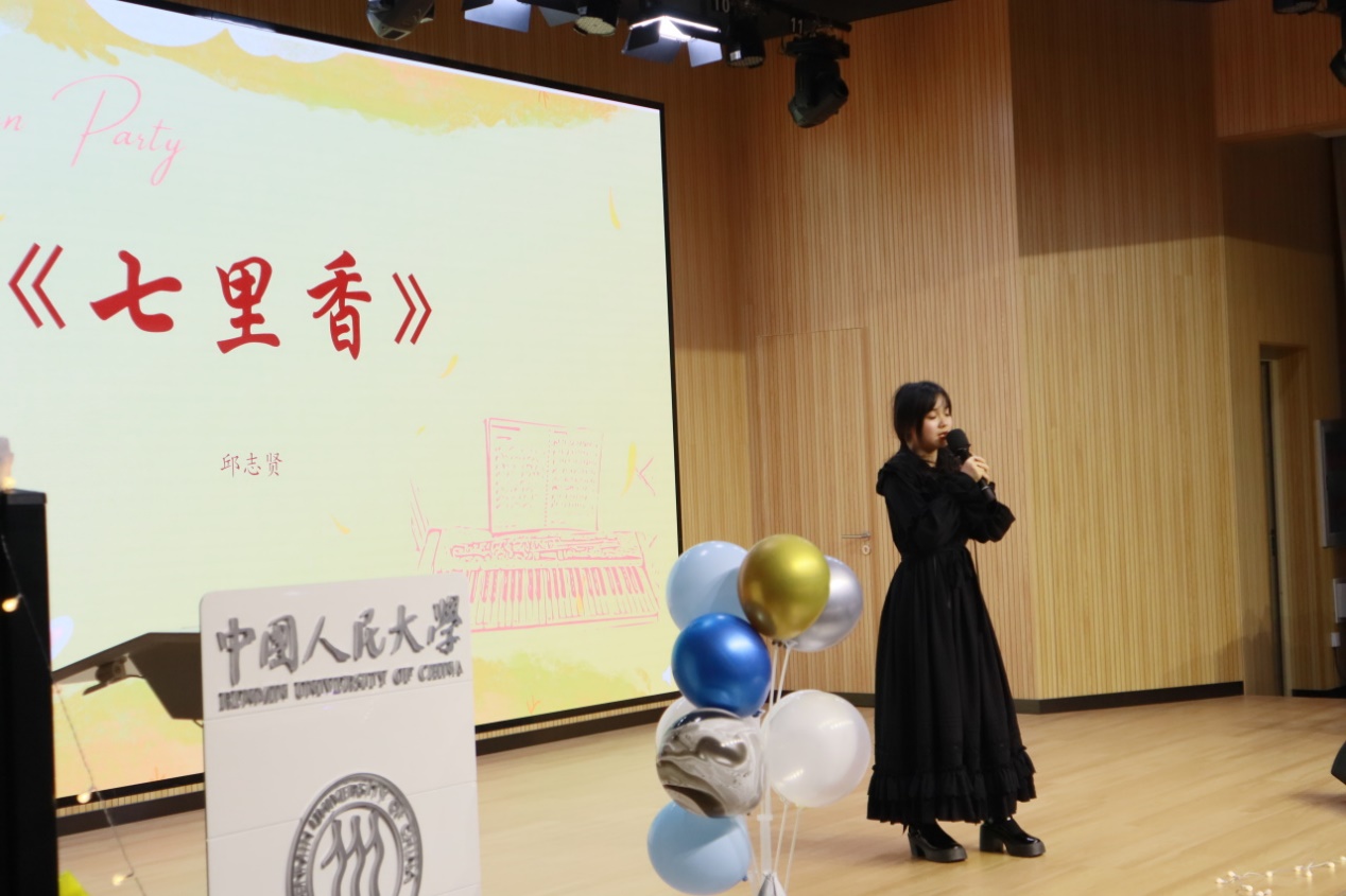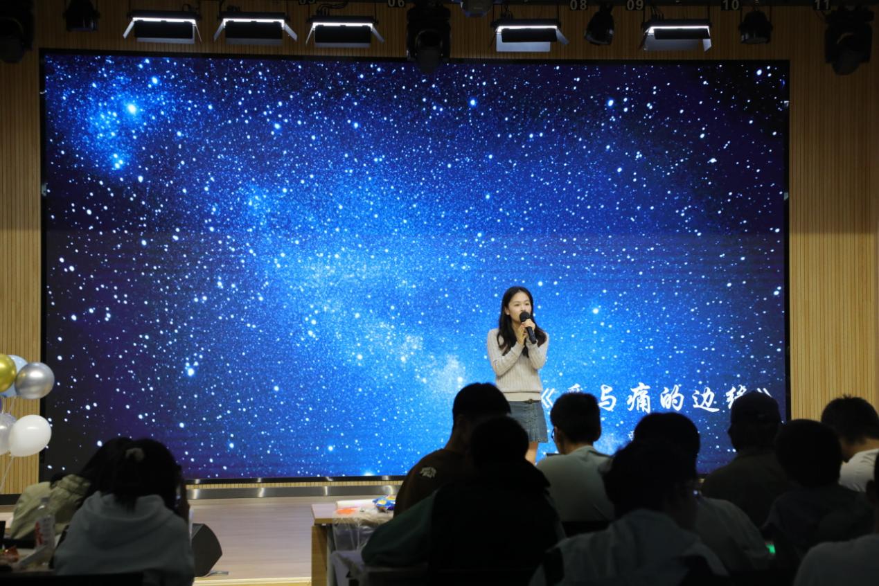 游戏过后,我们又一次沉浸在同学们优美的歌声当中。“爱若入骨,方知其苦。”贾思琪同学的独唱《爱与痛的边缘》,将爱情中的无措、挣扎与彷徨体现得淋漓尽致。