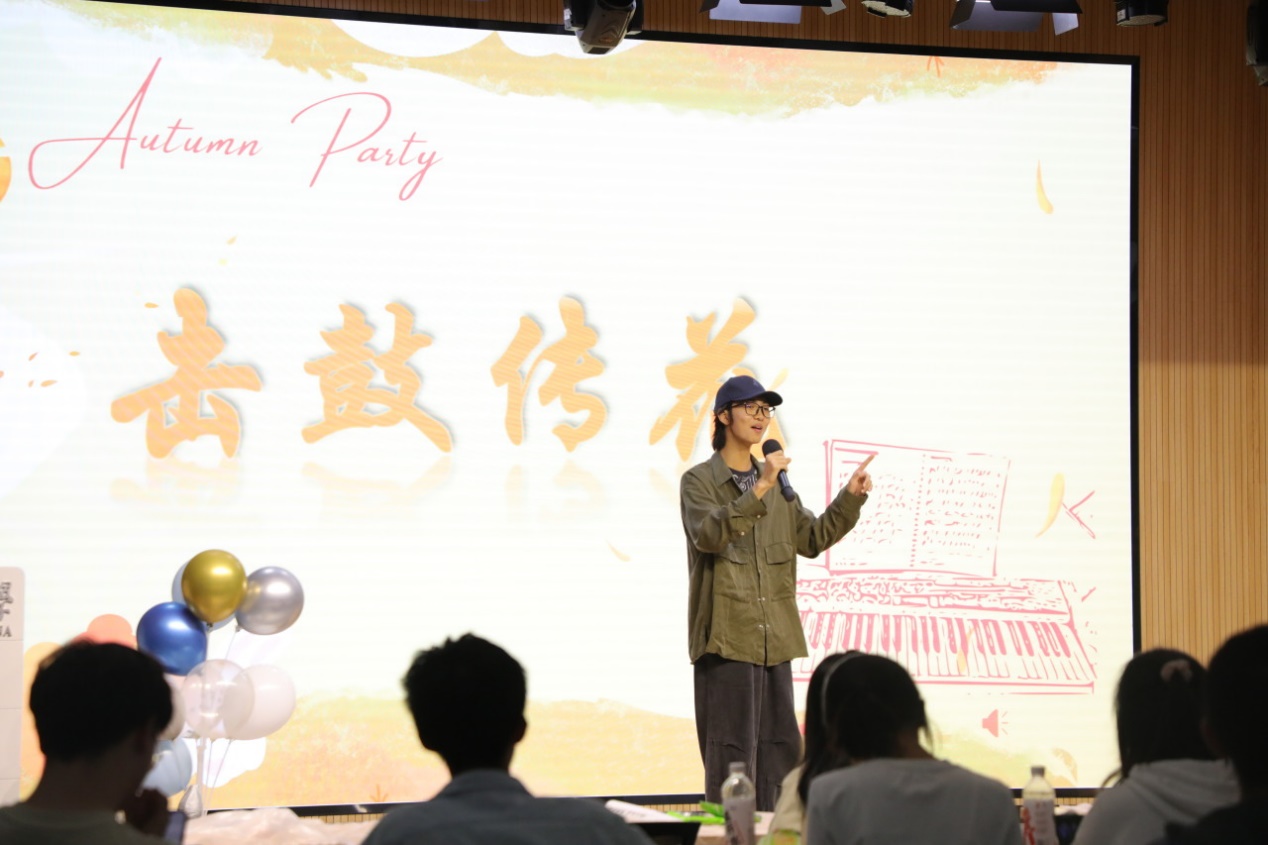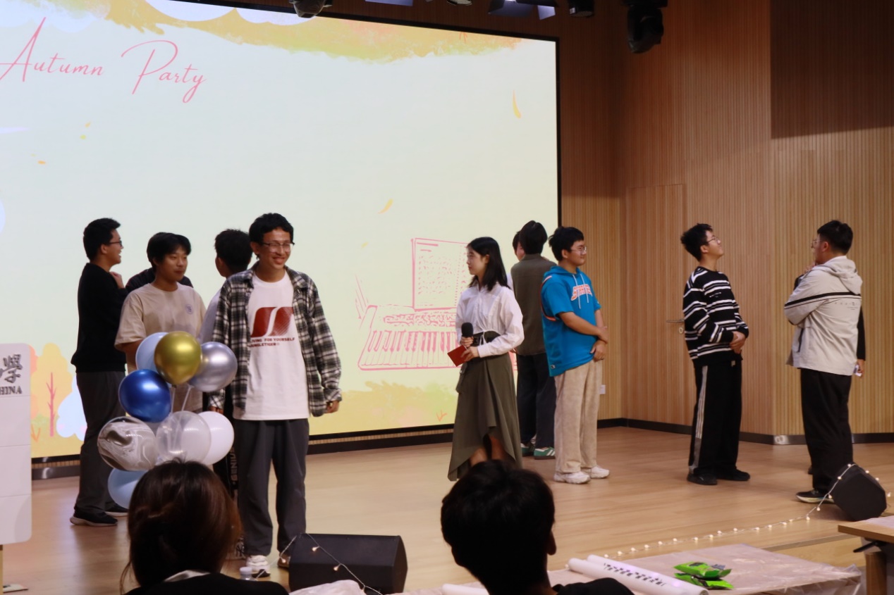 扣人心弦的演出暂停片刻,接下来是击鼓传花的小游戏,每当音乐停止,大家紧张又期待地盯着手中的玩偶,瞬间的沉默后总是爆发出阵阵欢笑,被抽中的同学将上台献唱,展现自己的才艺,并赢得精心准备的大礼包,惊喜与欢笑交织,使整个场面充满了活力与乐趣。