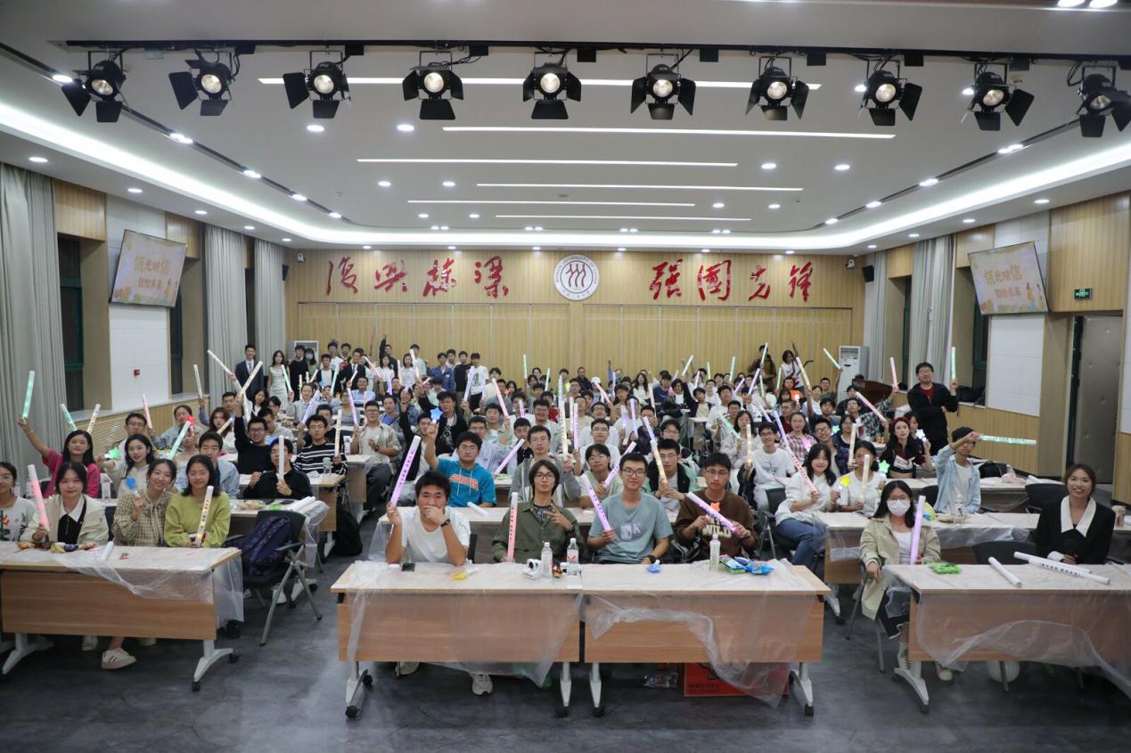 最后,由邱志贤同学带领大家共同唱响《七里香》,用悠扬的歌声为本次活动画上圆满的句号。在晃动的闪光灯之间,大家的声音交织在一起,宛如一股涓涓细流,既有青春的活力,又透着淡淡的怀旧。每个人都望见了自己的青春,或许不总是如火花一般热烈绚烂的奔赴,但会在心头引来若有若无的潮湿的清香。