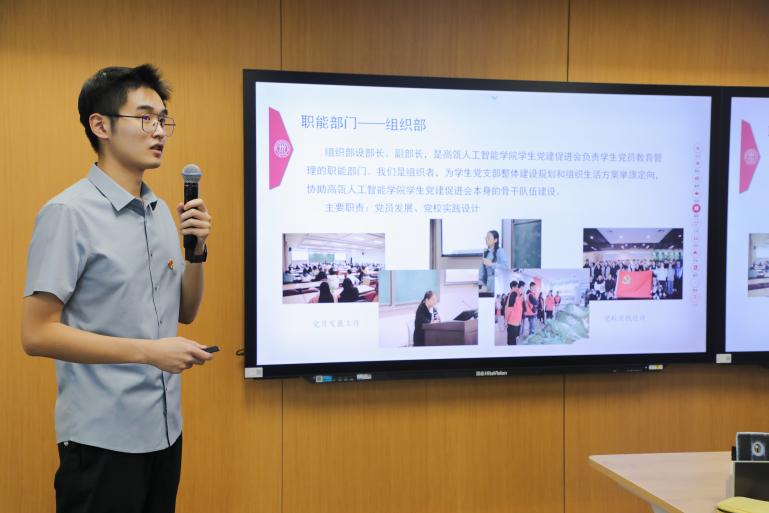 李熙通过视频展示了所在党支部的风采,以“搭建三个平台,建立三个标准,做好五个一”作为党支部工作规划,围绕“‘校园理论+AI向善’党建大不一样”的主题,分享了支部在引导青年党员树立远大志向、投身科技报国、深耕学术沃土、争做先锋闯将等方面的工作经验和感悟。