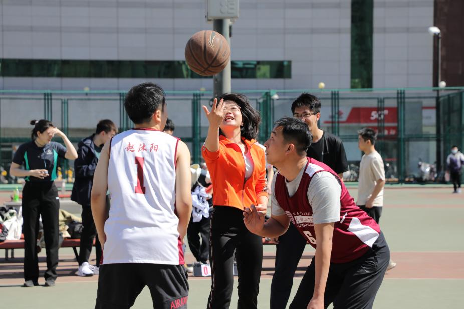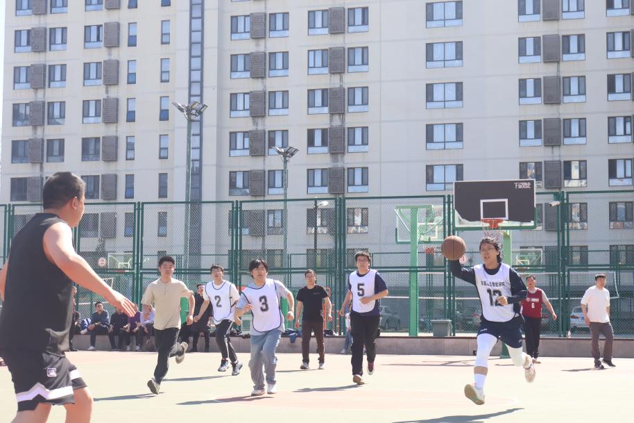 随着李艳丽老师为比赛开出首球,教师联队与来自本硕博各年级的学生队在球场上展开了激烈角逐。比赛哨声一响,刘森老师便展现了他的拿手绝活——欧洲步!他灵活地晃过防守,帅气地将球送进篮筐,为教师队先拔头筹。学生队不甘示弱,1号赵沐阳迅速站了出来,手起刀落,一记精准的三分球划破长空,将比分瞬间扳平,点燃了全场气氛!比赛进入白热化,刘勇老师开启个人表演模式。他先是一个干净利落的急停跳投命中,随后在重重包围中硬生生挤出一条路,强行得分。紧接着,他手感火热,连续命中两个中投,个人连得6分,掀起一波小高潮,教师队士气大振!学生队迅速反击,崔宇杰在篮下大放异彩,他用灵活的脚步戏耍防守,轻松上篮得分,为学生队追分。紧接着,学生队打出一波行云流水的传导进攻,球在队员间流畅传递,可惜最后一击稍显急躁,终结失误,错失扳平良机。