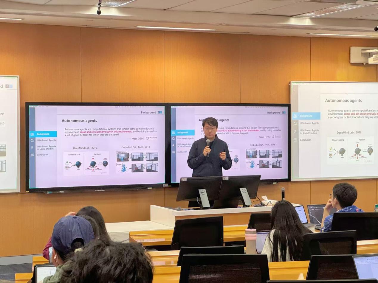 2025年4月9日,由荔枝视频 、教务处和实教处主办的“AI在人大,智启未来”系列通识讲座在立德楼601教室成功举办,荔枝视频 准聘副教授陈旭以“基于大模型智能体的社会模拟研究”为题为近百名师生带来了一场关于大模型智能体与社会模拟的精彩讲座。