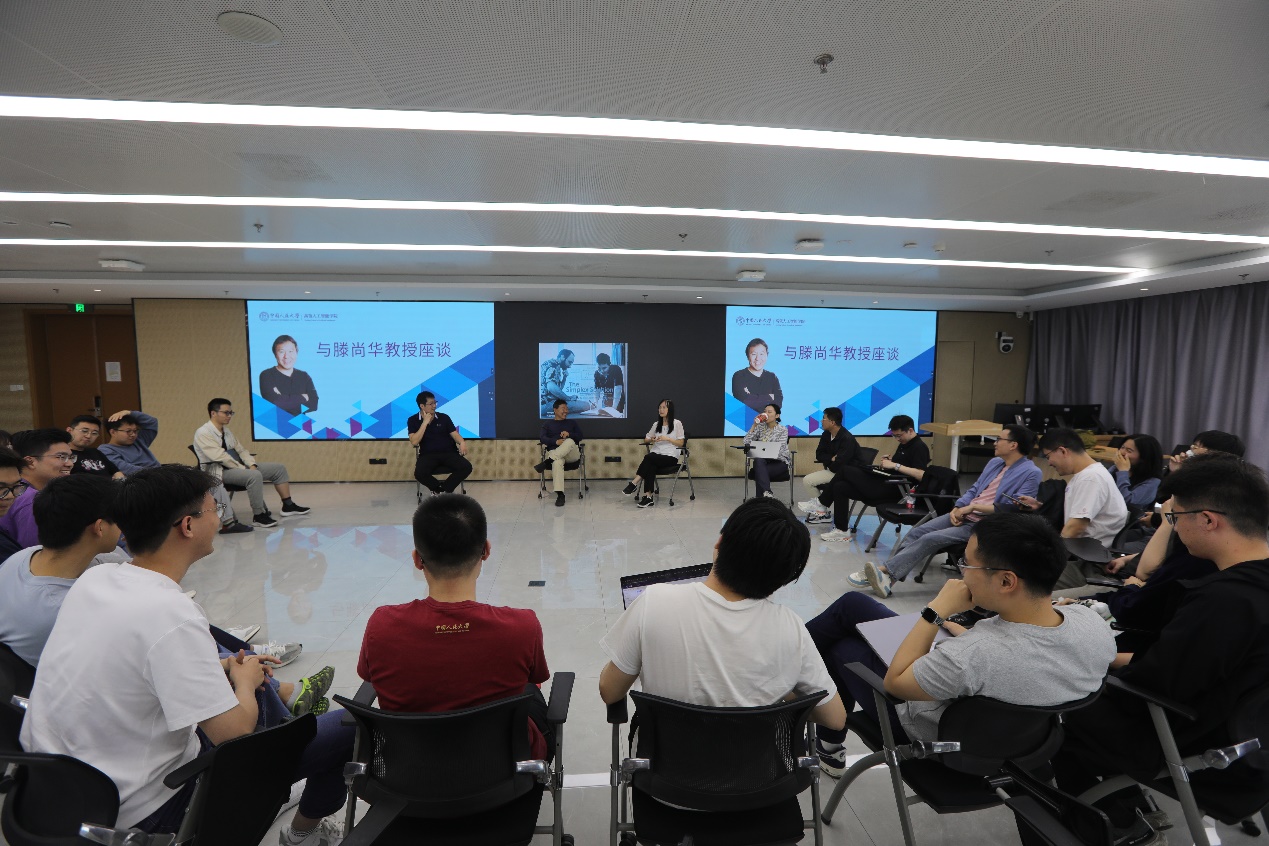 学术报告结束后,滕尚华教授与学院师生开展了一场别开生面的座谈。座谈环节高潮迭起,滕尚华教授与学院祁琦长聘副教授展开深度对谈,首度披露学术人生的多维图景。面对青年学者关于工作生活平衡的困惑,他睿智点拨:理论研究绝非孤独苦旅,国际学术圈层充满智性碰撞的火花。每年与全球顶尖头脑的思维交锋,恰是保持学术活力的秘诀。他坦言,科研工作只是生活的一部分,外界常认为理论研究枯燥孤独,但身处领域内却并非如此。在计算机理论研究的圈子里,合作氛围浓厚,能结识众多志同道合的同行,计算机理论研究实则是一个充满魅力的学科。