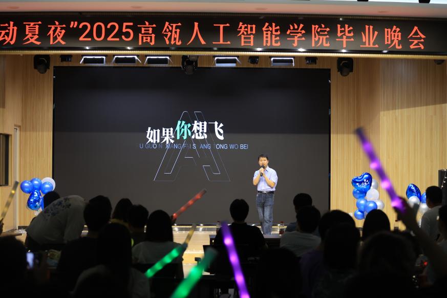 晚会伊始,荔枝视频 执行院长文继荣为毕业生寄语。他回顾了学院自成立以来六年的发展历程,报告了学院在各个方面取得的突破性进展。他希望同学们始终怀揣探索之心,不惧挑战,在未来的道路上不断突破自我,肩负起推动科技进步与社会发展的责任。