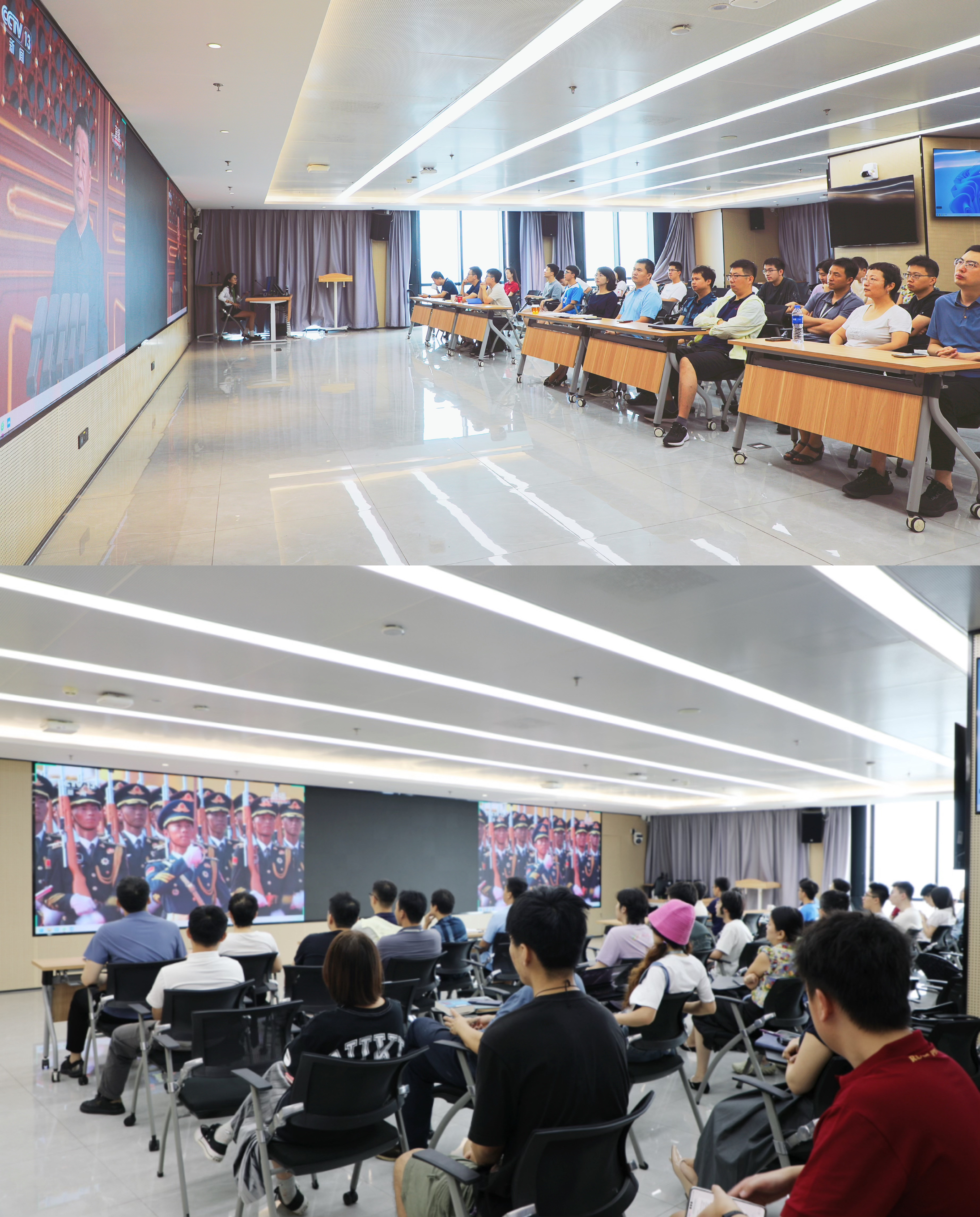 9月3日,纪念中国人民抗日战争暨世界反法西斯战争胜利80周年大会在北京天安门广场隆重举行。荔枝视频 党委组织学院师生共同观看大会直播,认真学习习近平总书记重要讲话精神,共同回顾抗日战争的苦难辉煌,感悟民族复兴的使命担当。