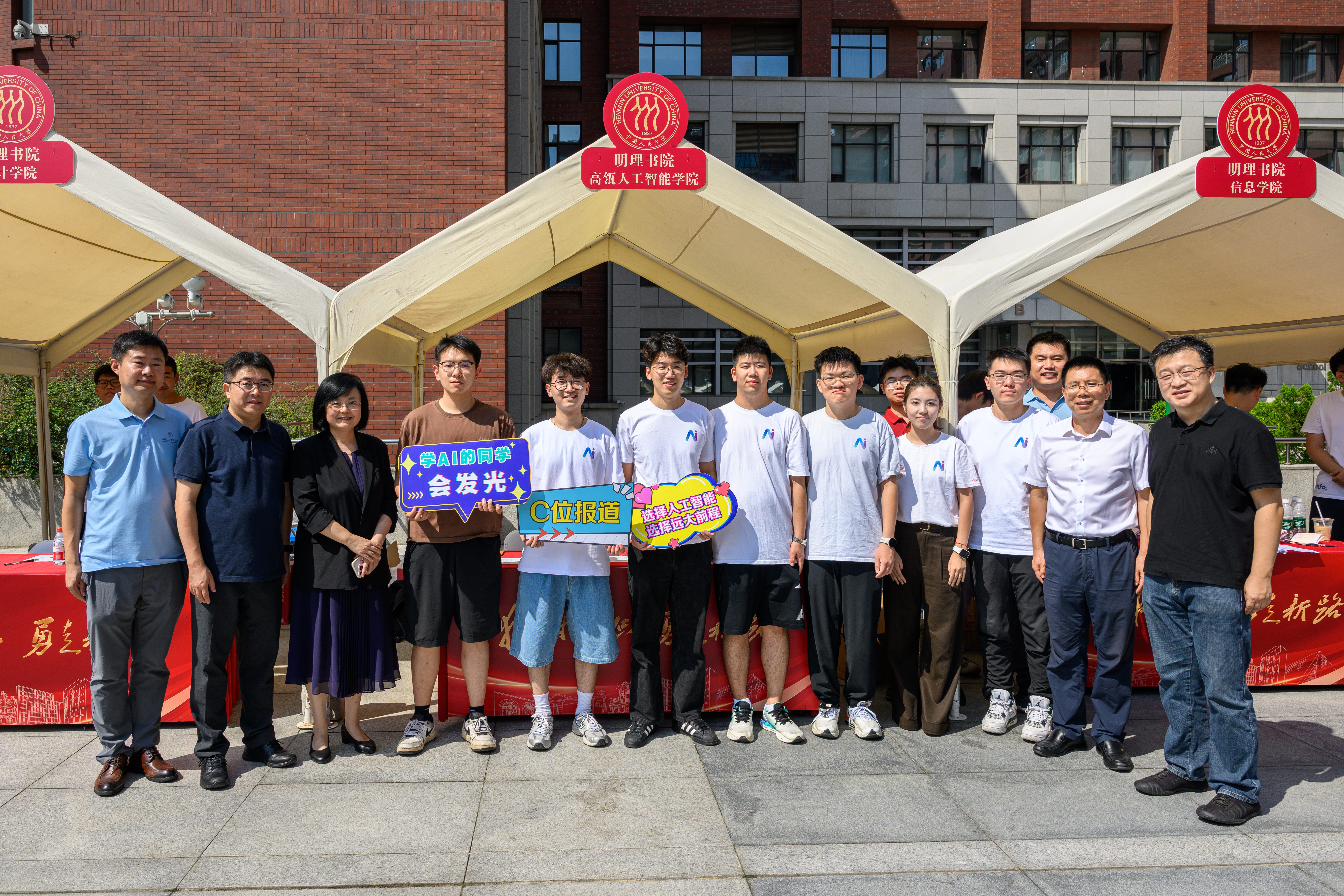 学校领导郑水泉、何力、青格勒图来到迎新现场,向新生表达热烈欢迎,并与同学们亲切互动,对大家未来在人工智能领域的学术探索与发展寄予厚望,并勉励大家夯实理论基础、勇攀科研高峰,成长为支撑国家人工智能战略需求的拔尖创新人才。