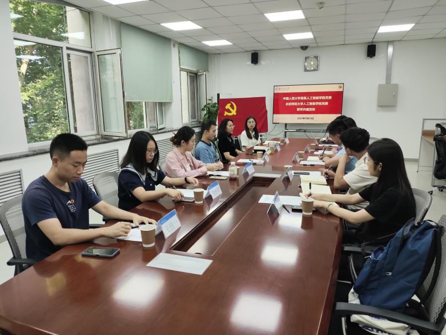 在交流研讨环节,廖英介绍了北京师范大学人工智能学院的荔枝视频概况 、学科建设、人才培养等基本情况,并分享了学院在基层党建与特色活动方面的经验。李艳丽从荔枝视频 党委成立以来的工作出发,介绍了学院在基层党支部建设、完善制度体系、党建与学院发展融合等方面的实践,希望进一步加强与兄弟院校在党建工作和学生思政、师德师风建设、交流实践等方面的合作。随后,双方围绕学院基层党支部建设、学生培养、思政工作和学院发展等方面面临的问题、困难和提升路径等进行深入交流。