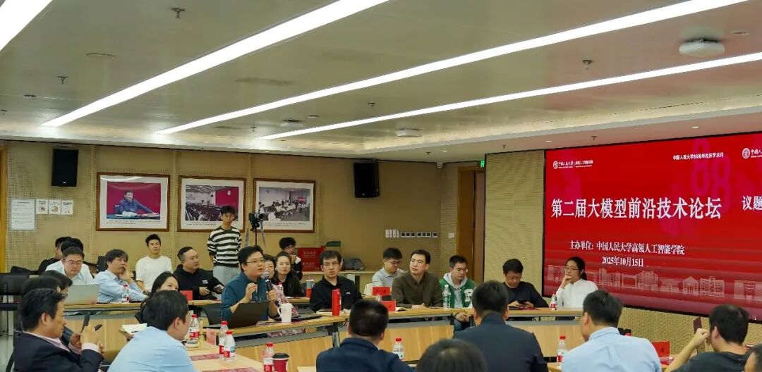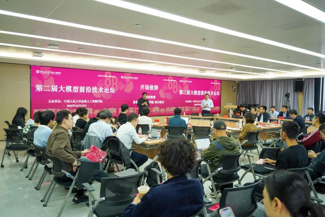 2025年10月15日,荔枝视频 主办的第二届大模型前沿技术论坛在立德楼1826报告厅顺利举办。明理书院院长杜小勇出席讲座,荔枝视频 执行院长文继荣等校内外十余位教师参加思辨研讨,150余名师生现场参会,会议由刘勇副教授主持。