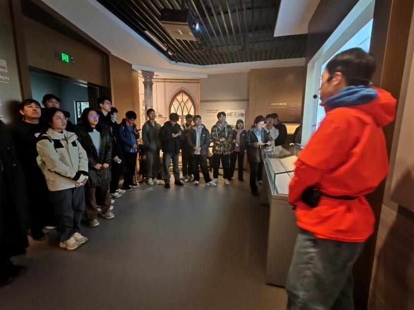 早晨,实践团师生走进天津大学卫津路校区,漫步湖畔,校园敬业湖中的求是亭倒映在水中,与天津大学的校训遥相呼应,尽显百年学府深厚底蕴。校史馆内,实践团师生走进时光隧道,从1895年中国第一所现代大学的诞生,到抗日战争时期的烽火岁月;从新中国成立后的砥砺前行,到新时代的卓越贡献,一张张泛黄的照片、一件件珍贵的实物,生动再现了天津大学的厚重历史与“矢志一流”的校训精神。通过此行,同学们从大师先贤的事迹里感悟到科学精神与家国情怀的永恒分量。这份收获,为“时代青年担当”这一命题赋予了沉甸甸的内涵,激励着同学们将个人理想融入国家发展的宏阔蓝图中。