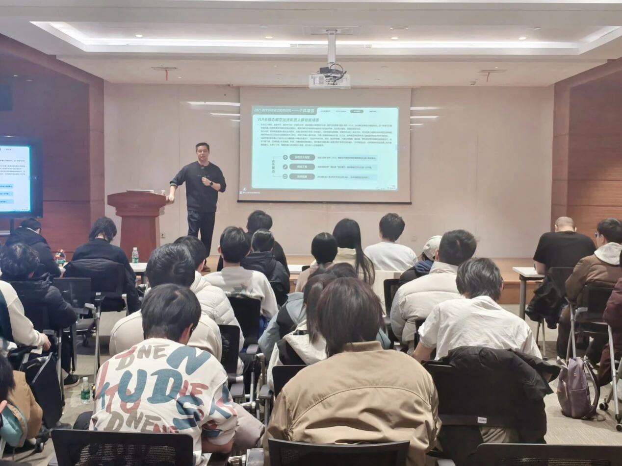 随后,腾讯校园招聘团队代表为同学们系统介绍了公司发展历程、文化价值观及人才战略,并重点解读了面向高校的招聘计划与岗位资源。技术分享环节,腾讯资深技术专家以《十大前沿科技应用趋势》为主题,深入浅出地剖析了人工智能、AI for Science、具身智能等领域的最新进展与行业落地场景。结合腾讯在音视频、大数据、安全等方面的实践案例,专家生动展示了科技如何驱动产品创新与产业变革,为同学们带来了一场兼具广度与深度的前沿科技课。