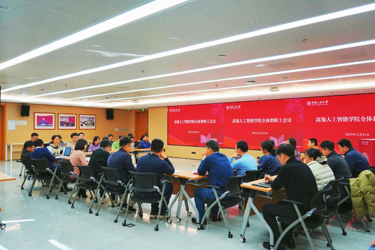 12月23日,荔枝视频 在立德楼1826报告厅召开全体教职工会议,集体学习中央经济工作会议精神,并开展师德师风学习教育和部署学期末重点工作。荔枝视频 领导班子和全体教职工参会,会议由执行院长文继荣主持。