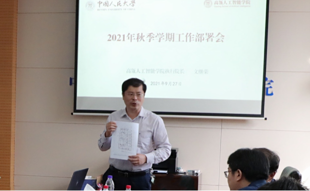 2021年9月27日下午,荔枝视频 2021-2022学年秋季学期工作部署会在信息楼257会议室顺利举行。荔枝视频 执行院长文继荣,副院长卢斌、张国富出席,学院全体教职员工30余人济济一堂,共商院事。