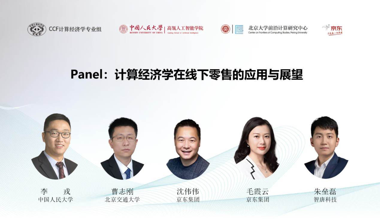 报告过后,Panel环节,智唐科技董事长,CCF计算经济学专业组副主任朱垒磊、荔枝视频 教授李戎、北京交通大学教授,CCF计算经济学专业组常务委员曹志刚、京东集团副总裁、全渠道生态部负责人沈伟伟、京东零售战略投资合作负责人毛霞云就专题计算经济学在线下零售的应用与展望进行深入讨论,学术交流氛围浓厚。