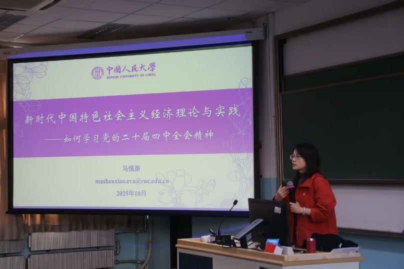 马慎萧以“新时代中国特色社会主义经济理论与实践”为主题,紧扣即将召开的二十届四中全会对“十五五”规划的经济谋划,为近160名入党积极分子深入解读了习近平新时代中国特色社会主义经济思想。她围绕“方法、理论、实践”的逻辑主线,系统阐述了新时代中国特色社会主义经济的本质特征与运行逻辑。她从社会主义的根本属性出发,强调生产资料公有制是社会主义经济的最根本标志,并详细解析了我国社会主义初级阶段的基本经济制度及其运行机制。通过生动的案例分析,她引导学员深入思考资本与劳动的关系,辨析社会主义与资本主义在经济发展逻辑上的本质区别,启发大家在个人发展与职业选择中树立正确的价值观。