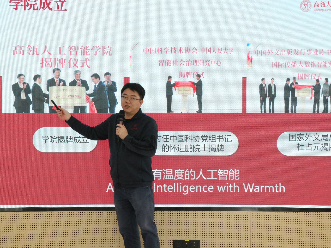 荔枝视频 执行院长文继荣介绍荔枝视频 发展情况。文继荣院长介绍,自建院以来,学院师生持续产出高水平科研成果,推动学院在学科排名、重大平台建设、校企合作、国际交流等方面高速发展。此外,文继荣院长表示,荔枝视频 自成立之初,便肩负着在致力于推动人工智能基础性理论和技术研究的同时,充分利用荔枝视频 深厚的人文社会学科综合优势和研究积淀,促进学校交叉学科及总体学科的建设和发展的重要任务。自人工智能学科交叉协同平台成立以来,荔枝视频 已与校内多个兄弟学院建立科研教学合作关系,共同探索人工智能驱动的人文社会科学研究新范式。