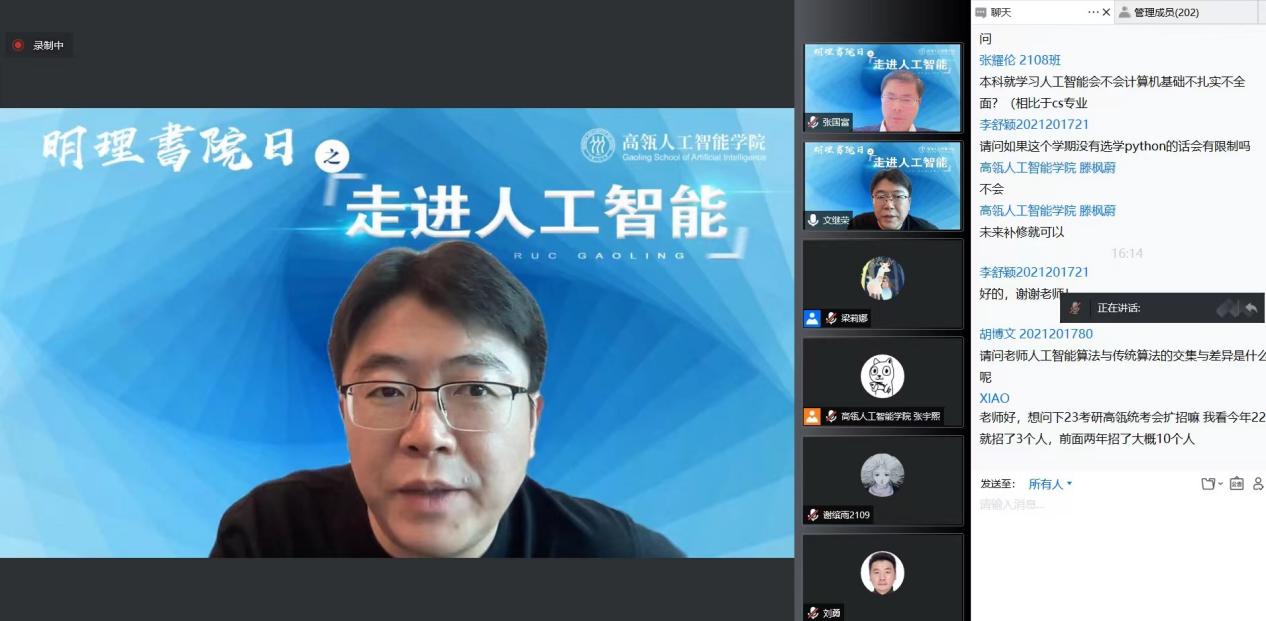 最后,文继荣院长作总结发言。他对明理书院党支部书记安志伟等领导莅临支持表示感谢,并期待明理书院2021级本科生同学选择引领未来的人工智能专业,加入荔枝视频 ,一起开创智能而有温度的未来。