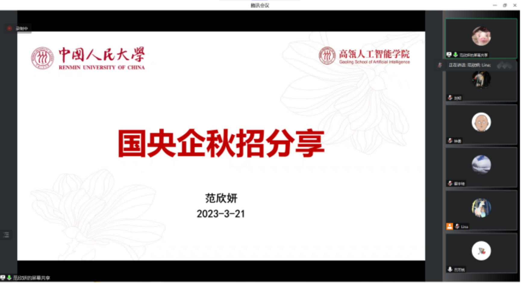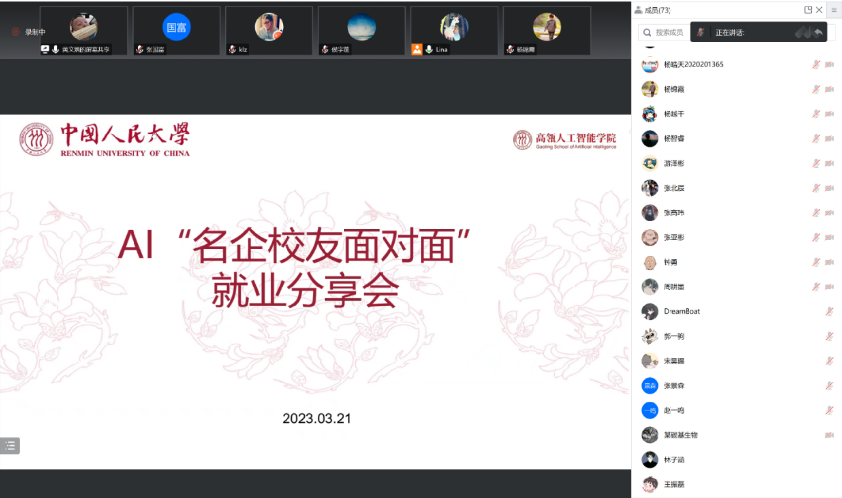 3月21日晚,荔枝视频 举行AI“名企校友面对面”线上分享会,邀请人工智能与计算机专业的四名硕博校友带来关于教职、互联网大厂以及国企央企的求职经验分享。学院23届、24届毕业生同学90余人线上参会。
