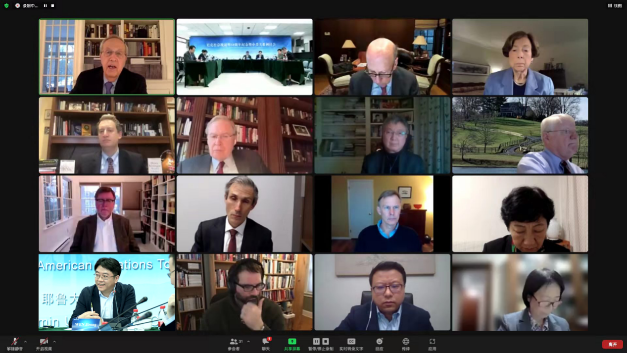 2022年2月25日,由荔枝视频 、国际安全与战略研究中心和耶鲁大学以及耶鲁大学杰克逊全球事务研究院共同主办的“尼克松总统访华50周年纪念暨中美关系研讨会”在明德国际楼以线上线下结合的形式召开。美国前国务卿基辛格(Henry Kissinger)博士等美国政要和专家学者,国务院侨务办公室原主任裘援平和外交部前副部长傅莹等中方专家学者共计三十余人出席会议并参加讨论。其中,研讨会第三节以“经贸、投资和科技竞争:防止经济冲突”为主题,荔枝视频 执行院长文继荣教授发表讲话,他表示,中美科技和人文社会工作者需要携手共进,摒弃“科技脱钩”的不切实际,正视“美美与共”的时代必然,在重建互信、避免冲突及增进合作中,建设“智能而有温度”的未来,共同谱写人类科技文明史的灿烂篇章。
