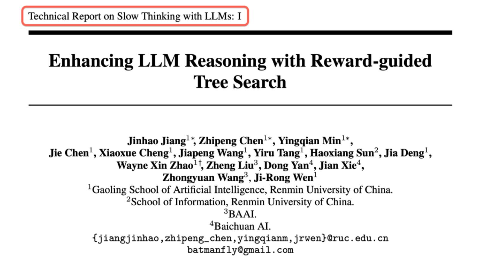 近年来,类似于 OpenAI 的o1等慢思考(slow-thinking)推理系统在解决复杂推理任务方面展现了卓越的能力。这些系统在回答查询之前,经过较长时间的思考与推理,能够生成更加全面、准确且有理有据的解决方案。然而,这些系统主要由工业界开发和维护,其核心技术尚未公开披露。因此,越来越多的研究工作开始致力于探索这些强大推理系统背后的技术基础。在此背景下,我们的团队致力于实现类似于 o1 的推理系统,希望开发一个技术开放的慢思考推理模型。在 11 月份,我们发布了第一份技术报告,利用奖励引导树搜索算法来辅助 LLM 的推理过程,在很大程度上提高了 LLM 在复杂推理任务中的性能。
